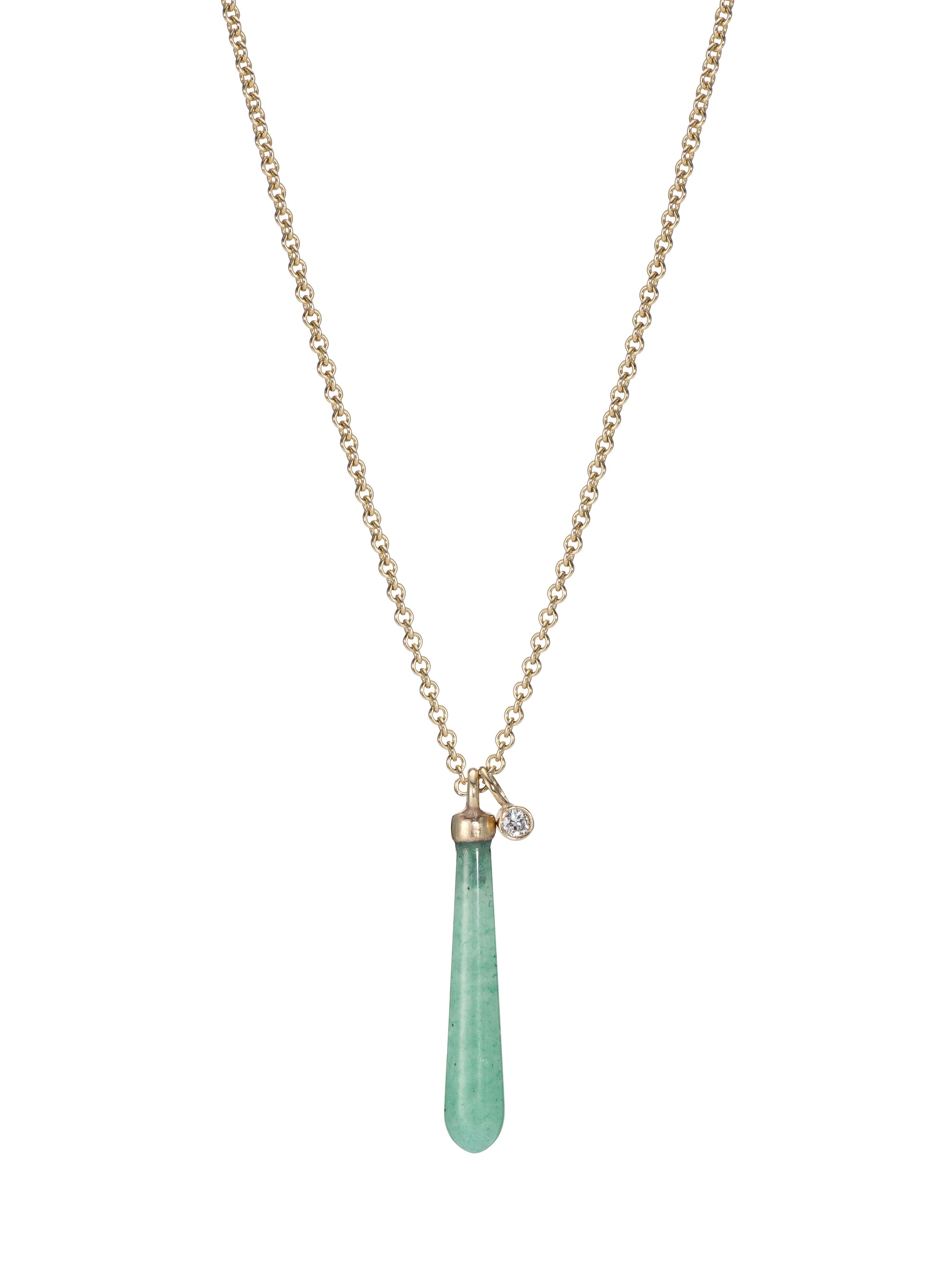 A beautiful drop of Aventurine on a solid gold chain and adorned with a white diamond charm.